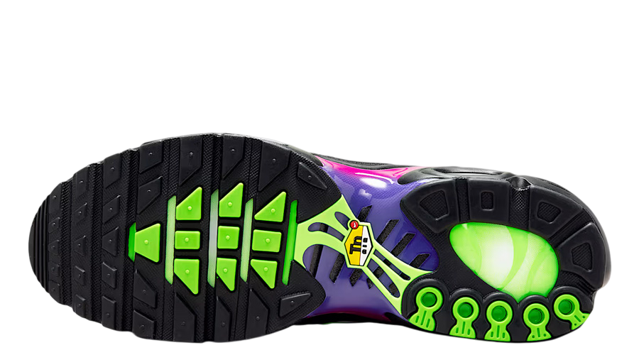 Tuned Air units sit proudly underfoot, supporting each step with firm yet responsive cushioning. The segmented waffle outsole grips the pavement and keeps the ride steady. No detail feels wasted—the TN remains aggressive, confident, and ready for action.