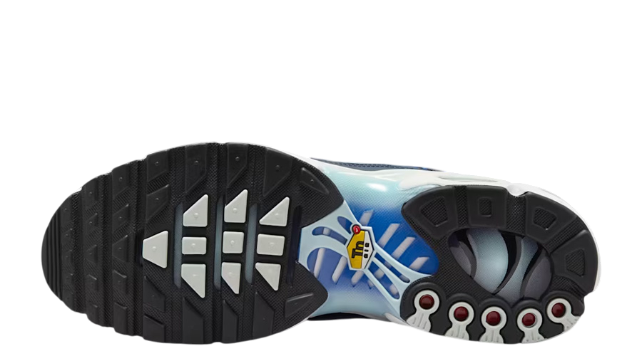 Instead of the usual wavy overlays, this pair uses clear TPU, letting the “Tuned Air” graphic shine loud and clear. Underfoot, you’ve got the same tried-and-tested cushioning setup — with visible Air bubbles and a sturdy midfoot shank, both dipped in Glacier Blue to match the theme.