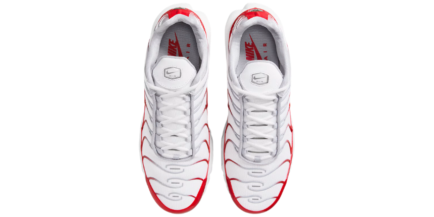 The Nike Air Max Plus White Red brings a fresh, energetic spin to one of Nike’s most iconic silhouettes. Wrapped in crisp white mesh, the upper sets a clean base, letting the striking red TPU wave overlays pop with confidence. These bold streaks aren’t just decorative — they create a dynamic, flowing look that harks back to the design’s late-’90s roots while feeling right at home in today’s sneaker landscape.