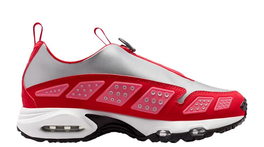 The Nike Air Max SNDR “Fusion Red” makes its bold return, bringing back one of Nike’s most unconventional designs from 1999 — this time with a modern, metallic twist. It’s a perfect balance of nostalgia and statement-making flair, landing somewhere between technical precision and daring street style.