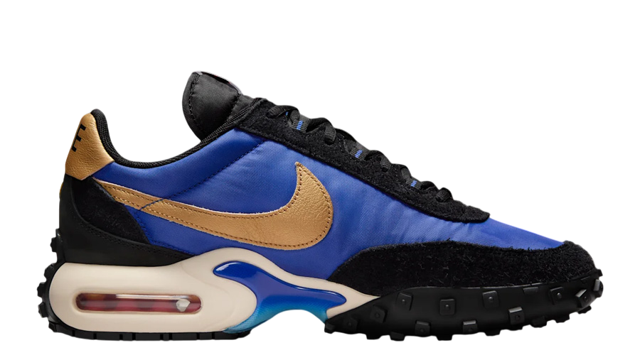 Nike continues to push boundaries by blending past and present with the Air Max Waffle Racer SP “Hyper Blue Metallic Gold.” This hybrid sneaker combines elements from two iconic designs—the Waffle Racer and Air Max Plus—resulting in a look that feels both familiar and fresh.