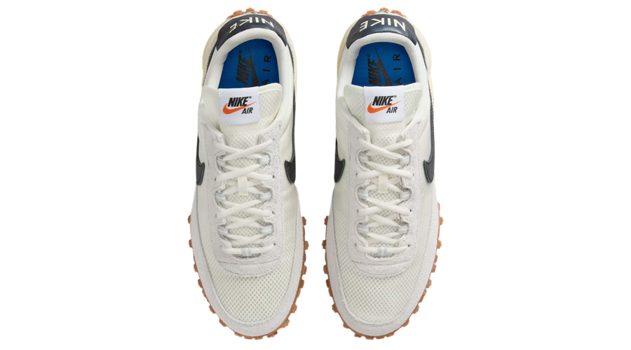 At the heart of the build is a lightweight upper that blends soft suede, leather and open-weave mesh. The textures stay balanced across a muted palette, combining Sail and Neutral Grey across the upper with black Swooshes for subtle contrast. Underfoot, a Coconut Milk midsole sits above a grippy gum outsole — grounding the shoe in that classic Waffle DNA while nodding to terrace and trail influence.