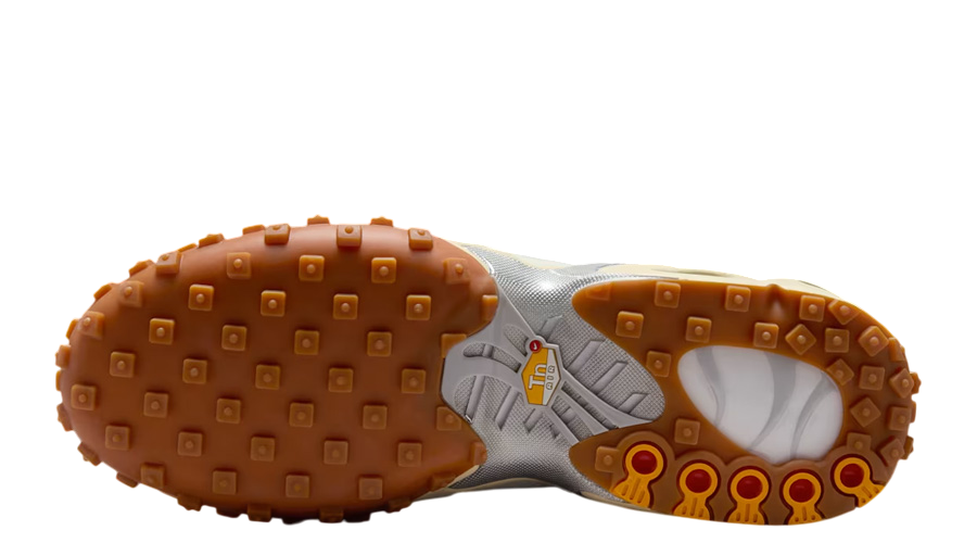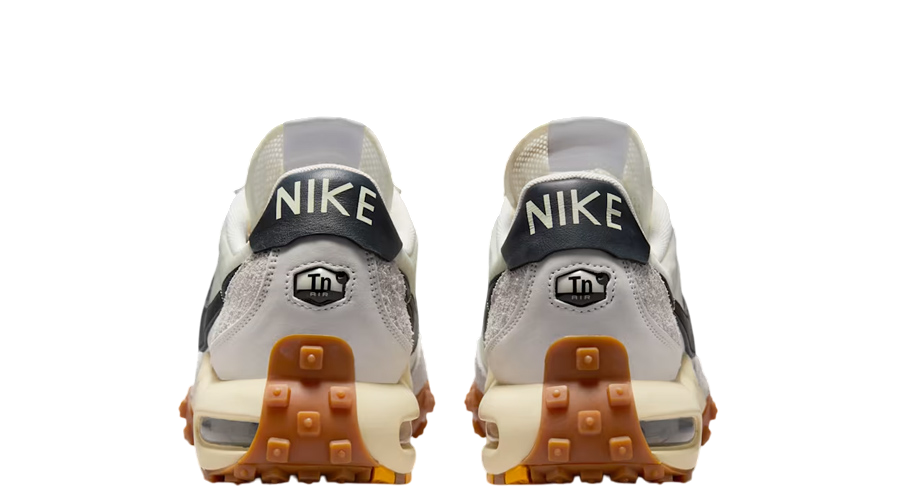 The hybrid tooling draws from two iconic Nike franchises. The upper borrows the Waffle Trainer’s lightweight feel and tread pattern, while the midsole houses Tuned Air units lifted from the Air Max Plus. The result is a shoe that feels familiar but looks forward — part running heritage, part modern remix.