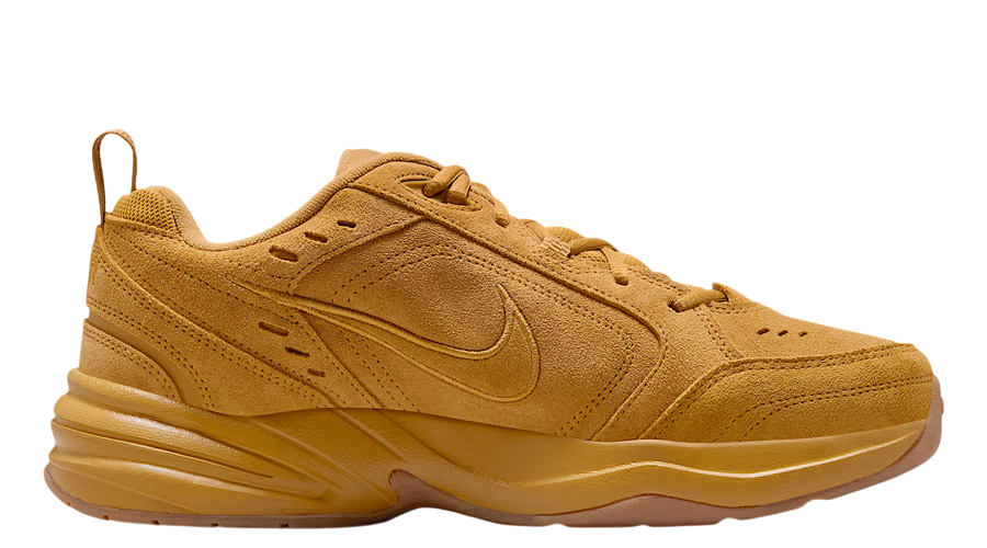 The Nike Air Monarch IV “Wheat” puts a fresh seasonal spin on one of Nike’s most recognisable trainers. Famous for its reputation as a reliable, comfort-driven sneaker, the Monarch IV arrives in a tonal golden suede makeover that nods to classic workboot aesthetics while keeping the athletic DNA of the silhouette intact.
