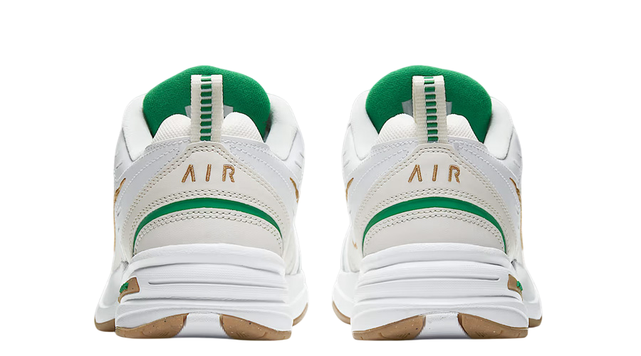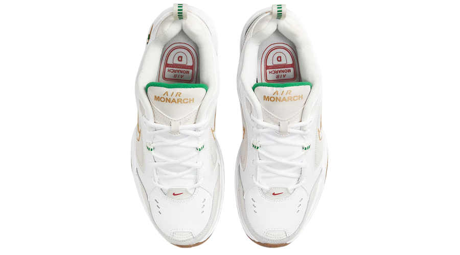 Nike revisits the Air Monarch IV with a seasonal update. The “White Lucky Green Gold” colourway blends the familiar comfort of the Monarch with a fresher, colder-weather palette. While the silhouette remains unchanged, this version steps into winter with subtle festive accents.