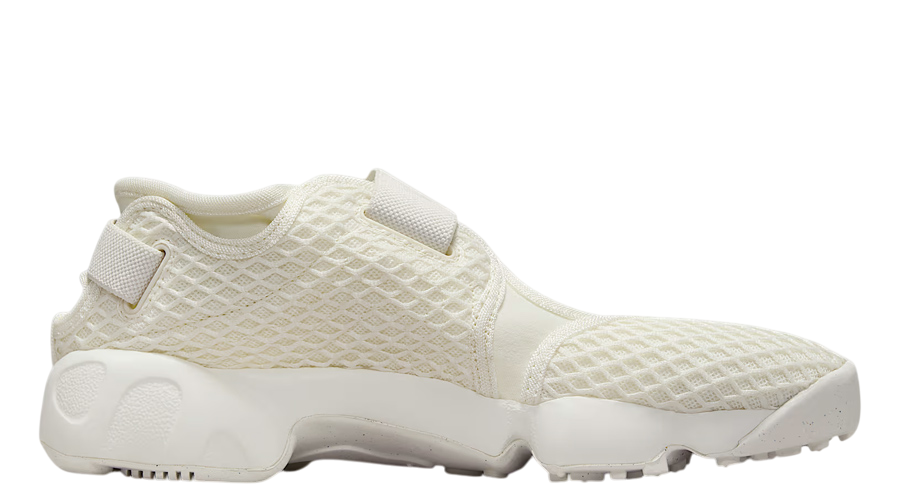 This latest version strips it right back. A lace-like mesh upper in light sail tones delivers breathable wear from heel to toe. The open design works with the airy fabric to promote ventilation, making it ideal for everything from strolls in the city to lounging on warm weekends. Hook-and-loop straps at the heel and midfoot provide an easy-on, secure fit, stamped with simple Nike branding for a clean finish.