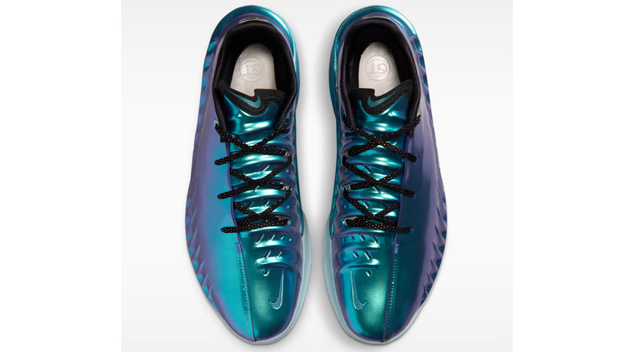 The upper leans into a futuristic look, especially on the “Preheat” edition. A lenticular finish wraps the side panels, shifting with light and movement. The Swoosh stretches across both medial and lateral sides, blending into the structure rather than sitting on top. It looks fast. And it plays that way.