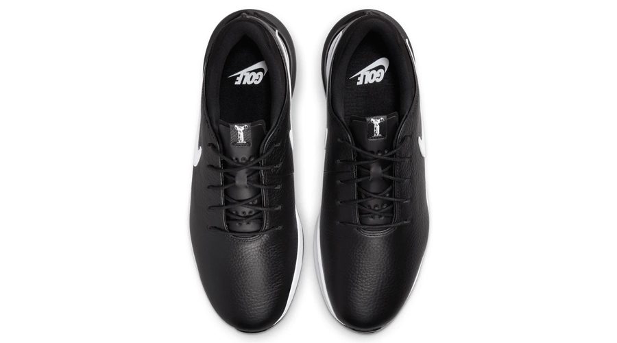 Crafted from full-grain leather, the shoe’s upper offers a supple touch and a refined look, reminiscent of classic golf footwear. An internal strap molds to the foot’s shape for a personalized, secure fit. The molded 3-D collar and internal foam pods at the heel further enhance stability and comfort.
