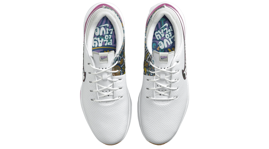 Get ready for the Nike Air Zoom Victory Tour 3 NRG “Play to Live” DZ4558-100! This golf shoe sets out to transform your playing experience. Embark on an enchanting journey with its vibrant and unique colours and fonts. Enjoy the benefits of its reliable comfort, impressive energy return, and upgraded spikes. Find the perfect balance as you meditate during a round or visualize your best shots, all while embracing the trendy style and exceptional performance offered by this footwear.