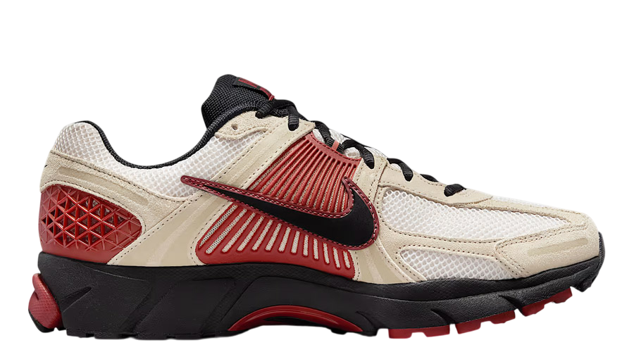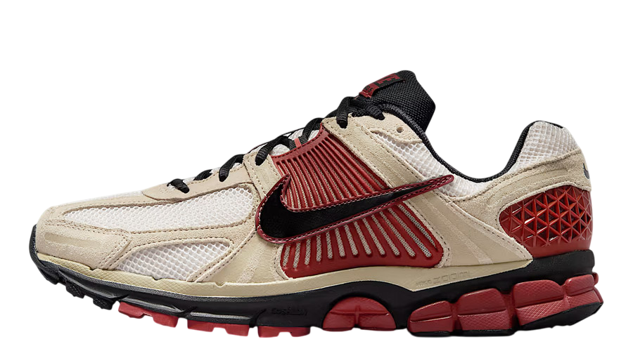 The Nike Air Zoom Vomero 5 “Desert Khaki Maroon” steps up with a rugged, outdoors-inspired look that blends earthy tones with refined details. This release features a layered mix of materials, pairing breathable textiles with durable suede overlays. The Desert Khaki suede wraps the upper, while hits of reddish maroon on the midsole, plastic heel cage, and midfoot panel add a sharp contrast. Black accents on the Swoosh, interior lining, and portions of the outsole balance the design, giving it a slightly retro nod similar to the “Escape” Air Force 1 colourways.