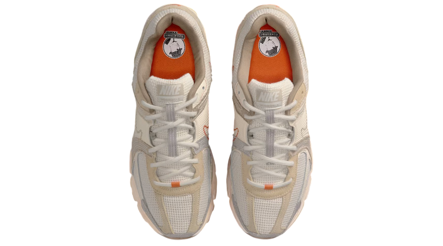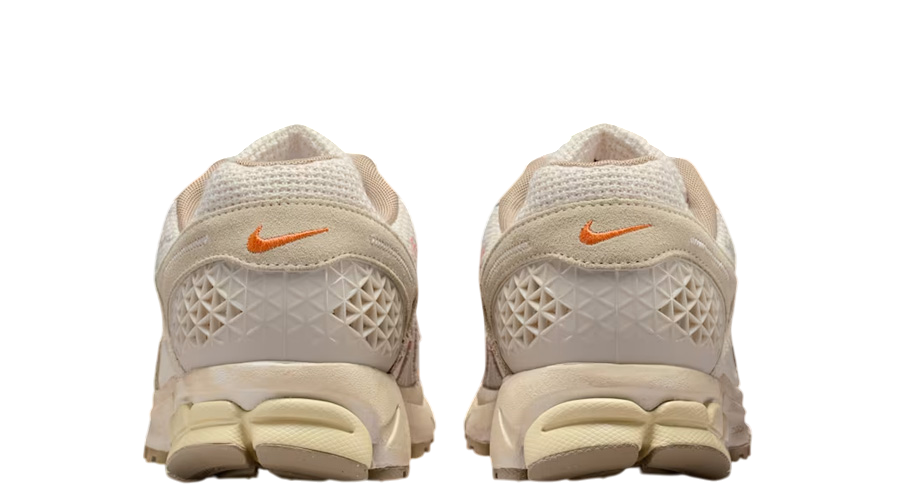 The colour palette stays muted in Muslin, Pale Ivory, College Grey and Sail, yet subtle orange accents hint at storytelling — landing on the medial Swoosh, lower eyelets, heel tab and outsole plate. Even the rope laces contribute to that handcrafted, almost customised aesthetic. The midsole arrives pre-scuffed, adding to the illusion that this pair has miles in its memory before it reaches the foot.