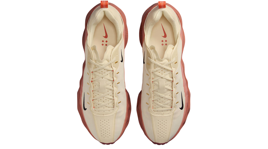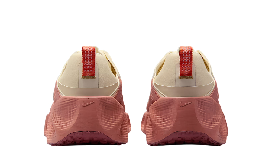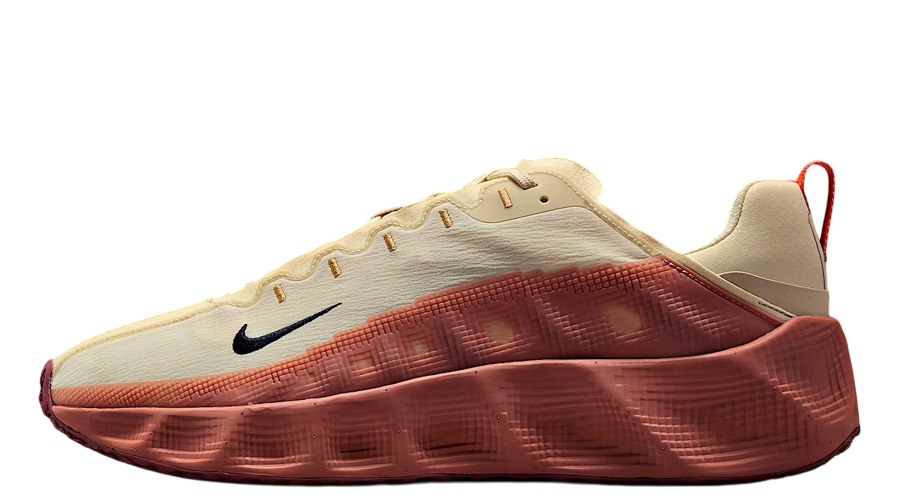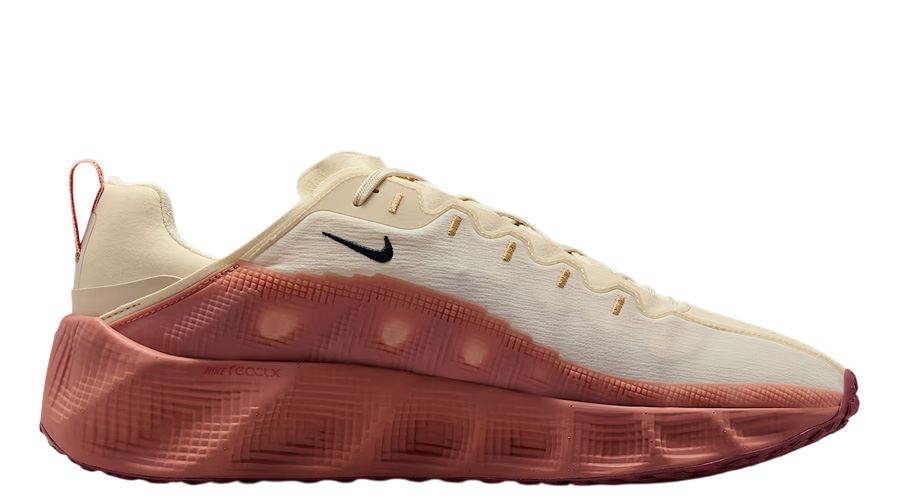 The upper arrives dressed in “Fossil” off-white—subtle, versatile, and easy to style. It’s made from a lightweight woven fabric that lets your feet breathe, reinforced with molded pixelated TPU mudguards that give structure and edge. The real statement comes in the midsole: stacked, crater-like, and loaded with Nike’s ReactX foam. The sculpted sole is dipped in “Canyon Rust” and “Cosmic Clay,” colours that hint at desert heat and Martian dust.