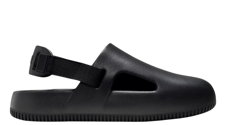 Nike extends its Calm line with a new take on the summer favourite: the Calm Mule. This “Triple Black” edition reworks the slip-on design into a closed-toe mule, built for everyday ease and understated appeal. The all-black finish gives it a sleek, versatile look, while the debossed Swoosh on the upper and minimal branding on the heel strap keep the design clean and refined. It’s a shoe that slides seamlessly into any rotation, from casual fits to laid-back weekend wear.