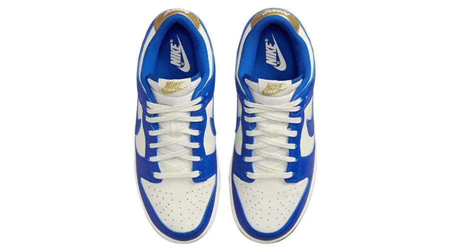 Crafted from premium leather, the uppers of the Nike Dunk Low “Kansas City Blue Royal” boast a luxurious feel and a timeless aesthetic. Nike’s iconic Swoosh logo takes center stage on both the laterals and medials, showcasing the brand’s commitment to quality and design. The use of premium materials not only enhances the sneaker’s durability but also elevates its overall aesthetic appeal.