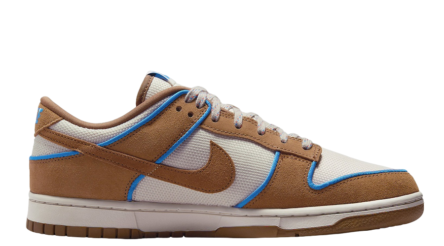 The Nike Dunk Low Premium “Light British Tan” FN5825-100 updates a beloved classic, mixing materials and hues for a fresh look. This edition showcases premium Light British Tan suede coupled with Light Orewood Brown textiles, ensuring the sneaker’s signature comfort remains intact. Highlighted by Photo Blue piping, the colour-blocked design is both subtle and striking.