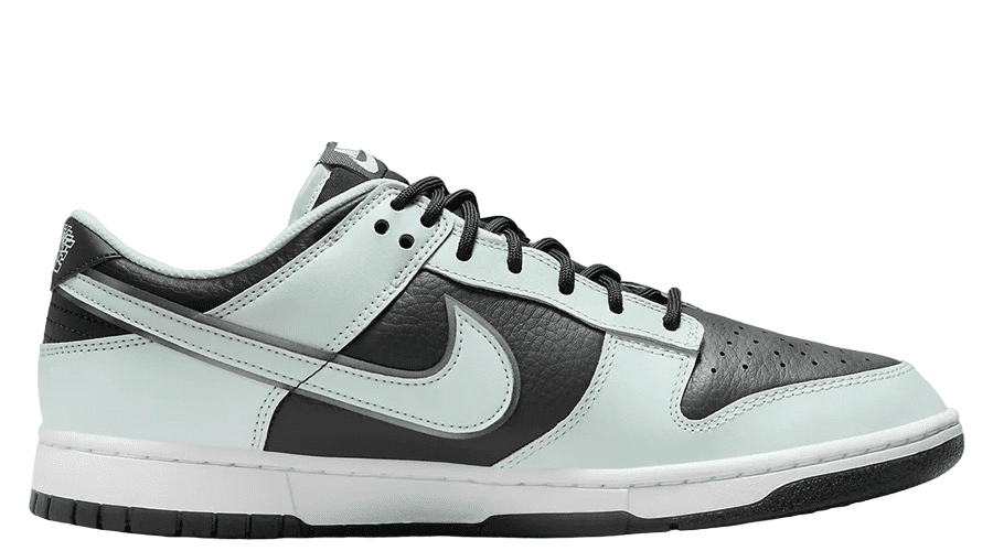 The Nike Dunk Low PRM “Dark Smoke Grey Barely Green” features a striking blend of Dark Smoke Grey, Barely Green, and White shades, adding a modern edge to the classic Dunk silhouette.