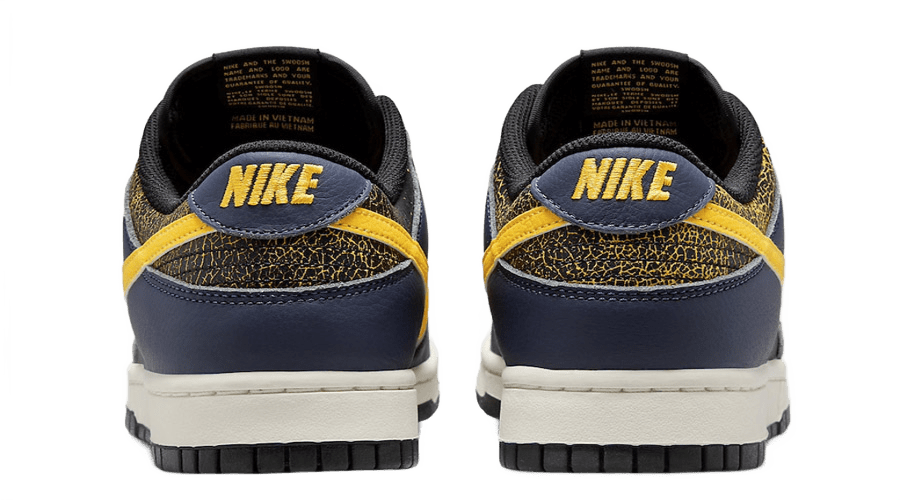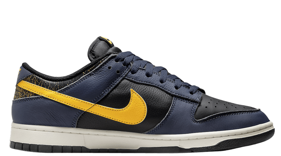Expertly crafted, the “Vintage Michigan” Nike Dunk Low FZ4014-010 effortlessly merges a classic charm with a modern flair. Adorned with an eye-catching colour palette that includes Black, Tour Yellow, Midnight Navy, and Sail, this model beautifully honours the iconic colours of the University of Michigan.