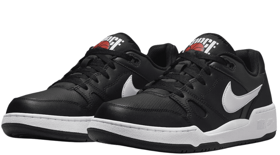 To create a visually striking contrast against the dominant black, Nike has incorporated white detailing throughout the Full Force Low. The iconic Swoosh logos, Force branding on the tongues, insole branding, and rubber midsoles all feature this crisp white hue. This deliberate choice not only highlights key design elements but also pays homage to the classic black-and-white color scheme that has become synonymous with Nike’s most iconic sneaker releases.