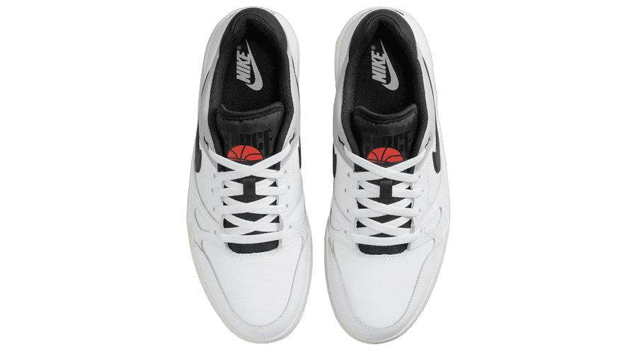 In this specific version, crisp white base pairs with subtle gray overlays, and bold black accents adorn elements such as the tongues, inner lining, insoles, Swoosh logos, and the rubber outsole. The tongues feature Force Basketball logos, and the midsole, decorated with speckles, proudly displays “Nike” and “Force” branding on the heels. Step into the Nike Full Force Low and embrace the retro vibes while confidently stepping into the present.