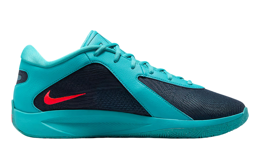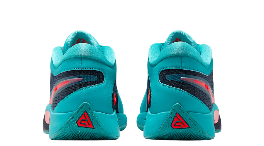 Visually, the Freak 6 keeps its aggressive, on-court-ready identity. The upper splits into striking aquatic tones, blending fresh blues and greens, while a bold laser red Swoosh slices through the midsole, adding a flash of energy. These colour choices reflect the playful yet fearless nature Giannis brings to the hardwood.