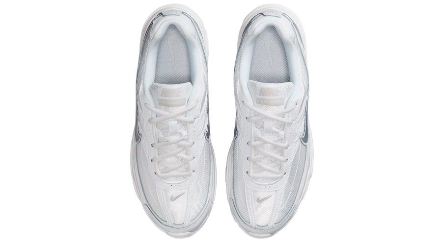 White forms the base, accented with subtle silver overlays and a black Swoosh that adds contrast without overwhelming the design. It’s the kind of colourway that fits into any rotation, pairing well with track pants, denim, or gym gear. The padded tongue and soft lining provide extra comfort for all-day wear, while the outsole pattern gives reliable traction across pavements and treadmills alike.