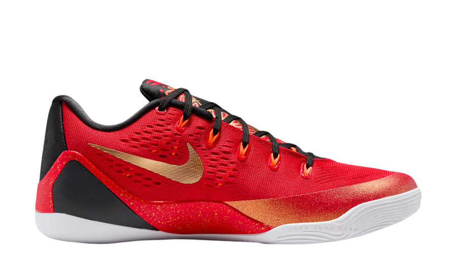 The Nike Kobe 9 Low EM “China” 2025 is shaping up to be one of the most talked-about Protro drops of the year. This pair steps away from the usual team-based colour sets and brings back a theme fans have been waiting for. Even without full in-hand photos, the colour code paints a clear picture: University Red, Metallic Gold, and Black. Strong tones. Sharp contrast. A look that fits the story behind the shoe.
