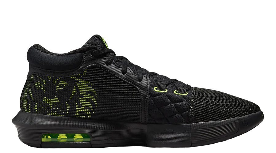 The design of the rubber outsole, split and partially cut out under the arch, aids in flexibility and reduces the overall weight of the shoe. The outsole is finished with a classic herringbone pattern, offering durable traction. Additional features include a padded collar and a diamond-stitched quilted tongue. The colourway is Black, Volt, and White. The Nike LeBron Witness 8 “Black Volt” is tailored for agility and performance on the basketball court.