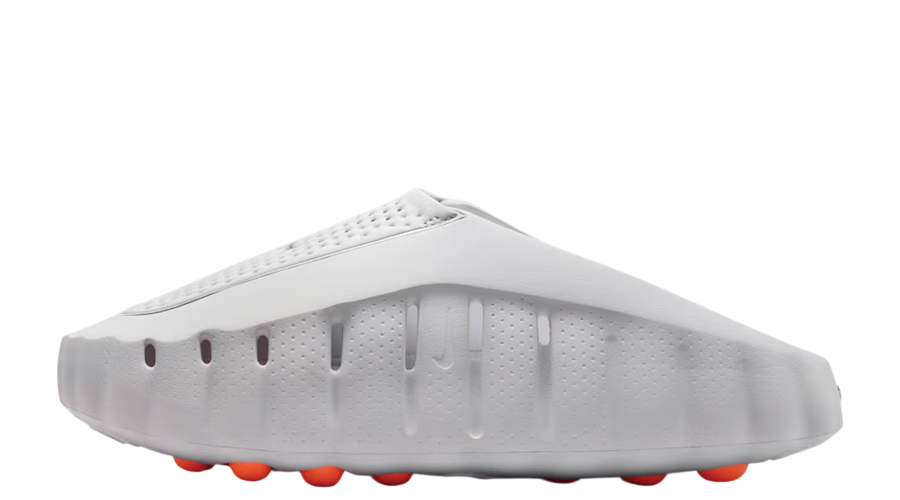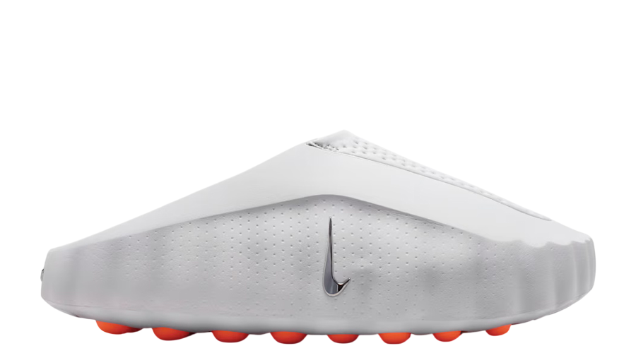 The Nike Mind 001 Mule “Light Smoke Grey” doesn’t follow the usual slide formula. It leans into a strange, futuristic look that feels straight from an experimental lab. The light grey foam upper keeps things soft, while the chromed-out mini Swoosh brings a sharp contrast on the instep. A vertical Swoosh sits along the side, giving the mule even more personality without making it feel busy.