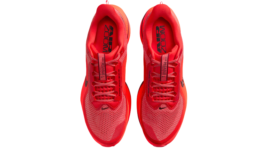 One detail stands out instantly. The Air Zoom unit is blacked out. It flips the usual Pegasus look on its head and adds real contrast underfoot. From the side, it gives the shoe a sharper profile. From above, it keeps the focus on that fiery upper.