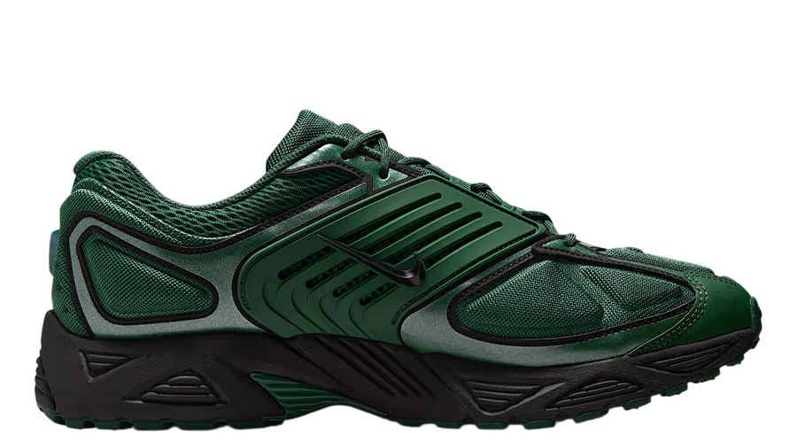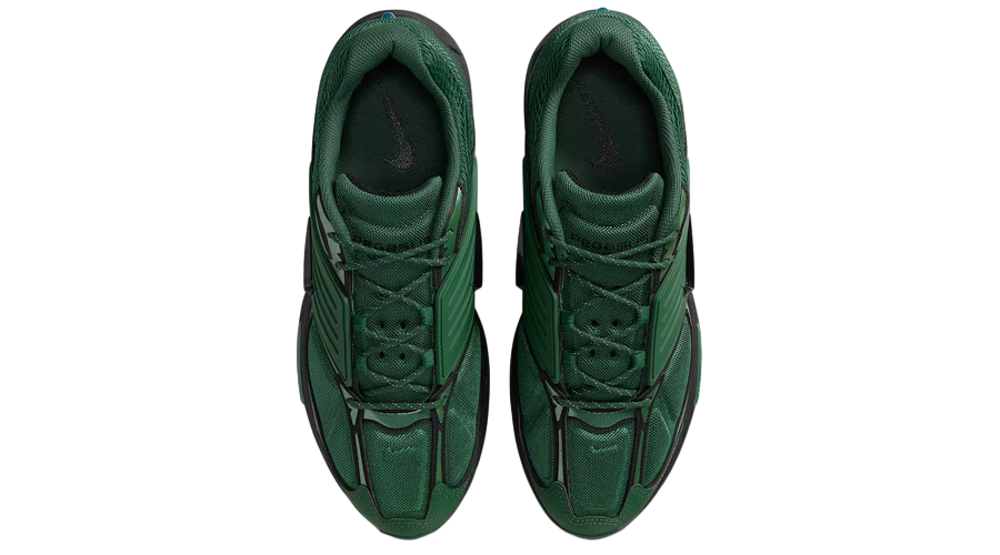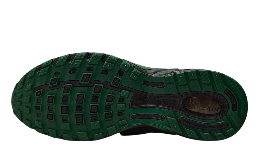 The Nike Pegasus Wave “Fir” strips back the bold gradients seen in earlier colourways, opting instead for a deep green finish with sharp black accents. The colours flip seamlessly between the upper and underfoot, creating a strong contrast that feels grounded yet striking. Leather underlays bring a subtle sparkle to the mix, adding depth to the layered construction.