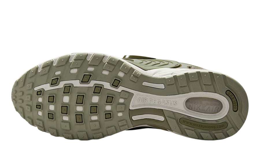 The Nike Pegasus Wave “Light Army” lands with a look that feels both functional and versatile, drawing heavily on outdoor-inspired design. Dressed in breathable mesh underlays with reinforced zones around the forefoot and heel, the sneaker mixes durability with everyday wearability. The tonal palette is led by a soft “Light Army” green across the upper, while a darker olive shade defines the cage and overlays. A crisp “Light Bone” midsole brings balance to the earthy build, giving the shoe a grounded yet modern finish.
