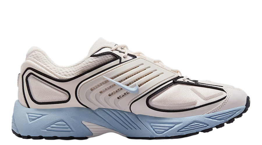 This colourway keeps things clean and minimal with a Phantom white mesh base, complemented by a soft Light Armory Blue midsole that runs the full length of the shoe. Black trim outlines the overlays and collar, adding definition and contrast. A translucent blue plate cuts through the midfoot cage for a subtle hit of colour that adds just enough pop.
