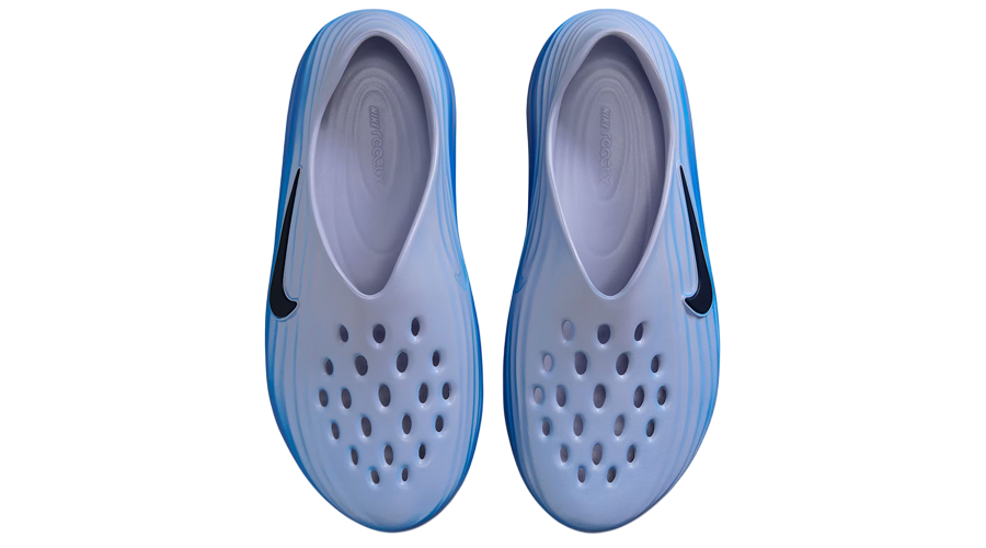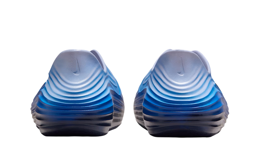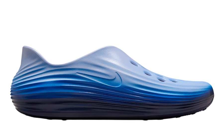 The Nike ReactX Rejuven8 keeps things easy—no laces, no fuss. This laceless slip-on builds on Nike’s popular clog formula, offering all-day comfort with a breathable, single-piece upper that hugs the foot without feeling tight. It doesn’t try to be loud, but the gradient “Midnight Navy Comet Blue” finish still catches the eye, fading from deep blue to light sky tones with a fluid, almost digital feel.