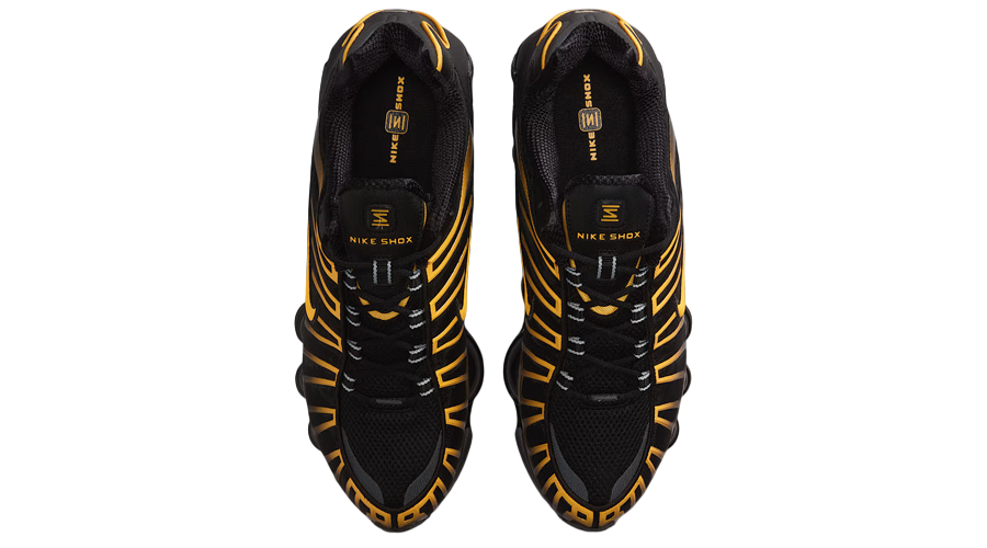 The Nike Shox TL “Black University Gold” returns as a statement-making update to the 2003 classic. Built with a breathable mesh upper and layered synthetic overlays, the shoe balances performance tech with street presence. The all-black foundation sets the stage for striking university gold accents, with the Swoosh and gradient details lighting up the sidewalls like the first break of dawn.