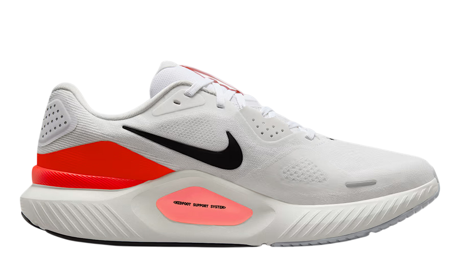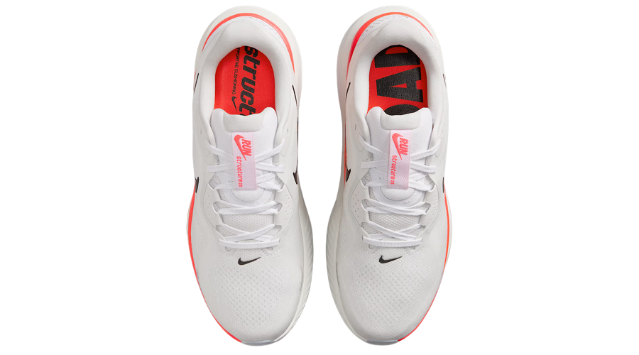 Nike sticks with what works on the Structure 26 and gives it a punchy twist through the “White Bright Crimson” colourway. This isn’t a radical update. It keeps the same core formula that stability runners rely on, while small shifts in comfort and response make it easier to wear daily.