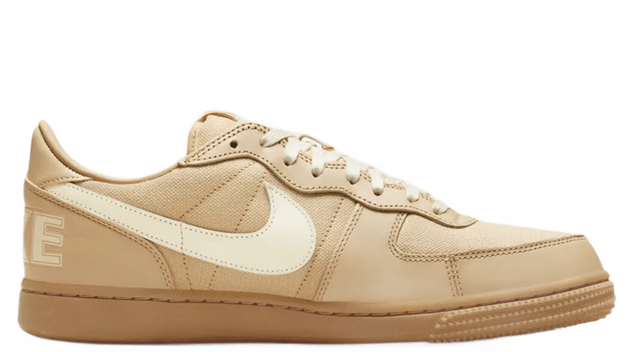 The Nike Terminator Low “Sesame” FZ3964-252 effortlessly updates a classic sneaker style with a modern twist. It stands out with its fresh colour mix and selection of high-quality materials. The upper part of the shoe combines durable canvas with sleek, smooth leather. This canvas, covering most of the upper and the tongue, adds a sturdy yet refined feel. Meanwhile, the soft leather on the overlays and inside the shoe brings a touch of sophistication, balancing out the overall look.