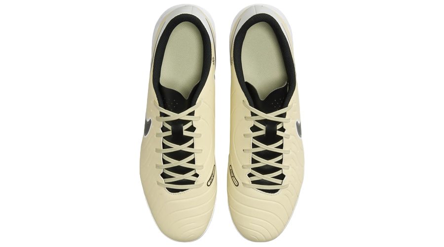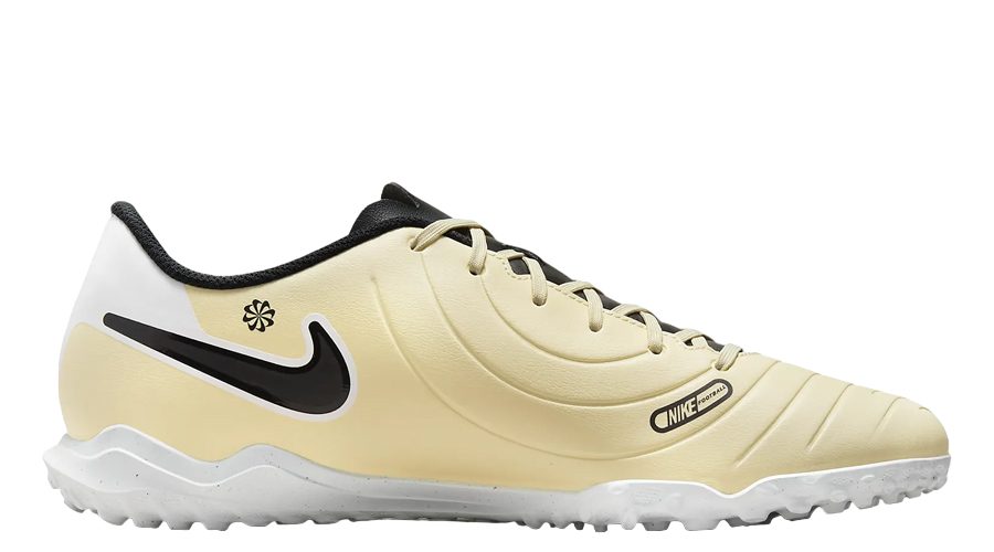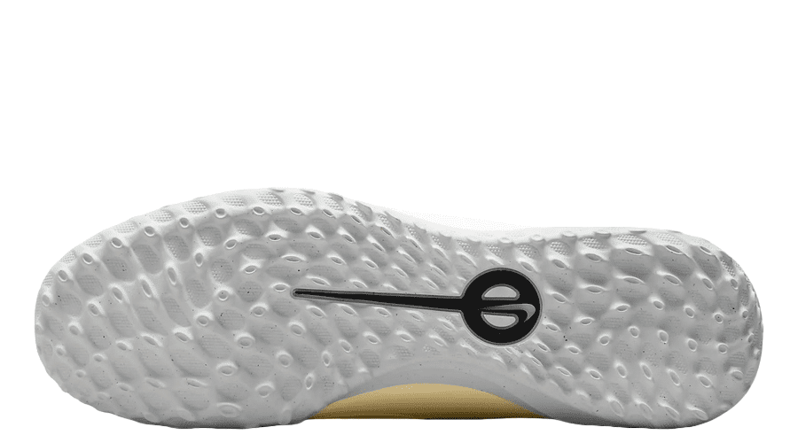 Tailored for play on synthetic turf, the outsole’s specific traction pattern offers the necessary grip for quick turns and consistent speed, without sacrificing stability. Comfort is also a key feature, with a cushioned insole included to reduce foot strain during extended periods of play. The dynamic Lemonade/Metallic Gold Coin/Black colourway adds a visually striking aspect to the shoe, marrying performance with aesthetics. The Nike Tiempo Legend 10 Club IC GS “Mad Ready Pack” embodies Nike’s dedication to pushing the boundaries of football shoe technology, catering to the evolving requirements of the game.
