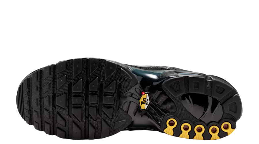 That signature TPU cage wraps the sides, locking in the foot and giving the Air Max Plus its unmistakable attitude. Wavy lines. Sharp curves. This is a design that refuses to blend in, even in darker tones. Reflective hits add extra detail when light catches the shoe.