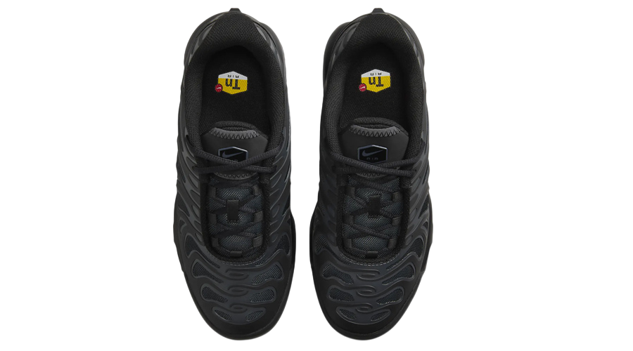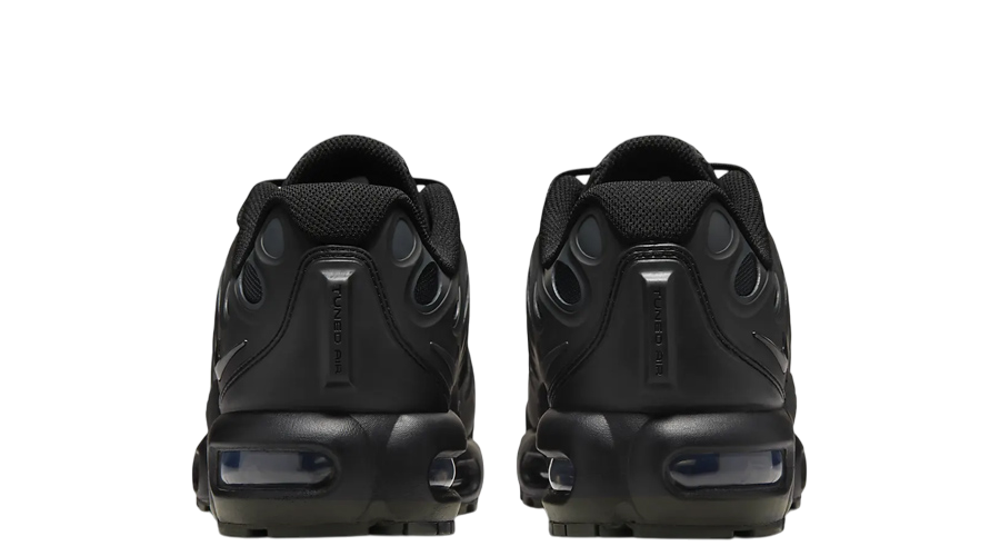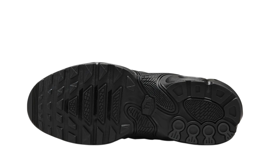 One of the standout features of this model is the tough rubber cage, designed to withstand the rigours of active use. This reinforcement ensures the upper remains durable without compromising the recognisable design of the Air Max Plus. The triple-black colourway, with its blend of Black and Anthracite tones, delivers a clean and understated look that works well across different settings.
