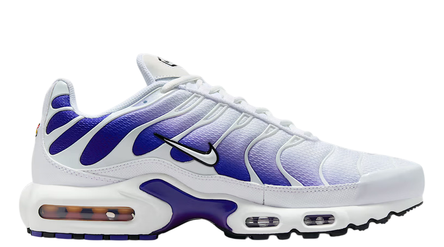 The Nike Air Max Plus TN “White Wild Grape” drops in the UK on 18 June 2025, retailing at £174.99 via Nike SNKRS UK, Foot Locker, JD Sports, Offspring, and Footpatrol. It features a crisp white LTE mesh base accentuated by a vibrant Wild Grape gradient across the upper. The signature TPU wave cage stays pure white, making the purple hues pop. A hint of orange shows in the rear Air bubble—and yes, that little accent really lifts the summer energy.