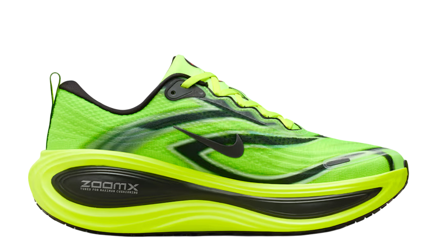 The Nike Vomero Plus SE “Volt Ekiden Pack” brings loud colour, racing heritage, and serious comfort together in one sharp package. The bright volt mesh upper stands out instantly. Wavy lines run across the surface, giving the shoe movement even when you’re standing still. A bold synthetic Swoosh anchors the sidewalls, while a small printed Swoosh sits at the toe for an extra hit of detail.