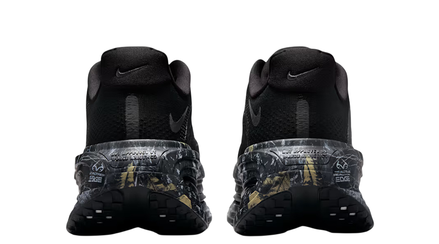 The upper stays fully black, keeping things clean and low-key. Underfoot is where this pair really stands apart. The ZoomX foam midsole carries an official Realtree camo print, wrapping the entire sole with a bold graphic that feels unexpected on a road-focused runner. The Swoosh blends in, letting the pattern do the talking.