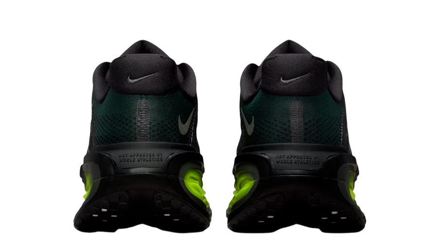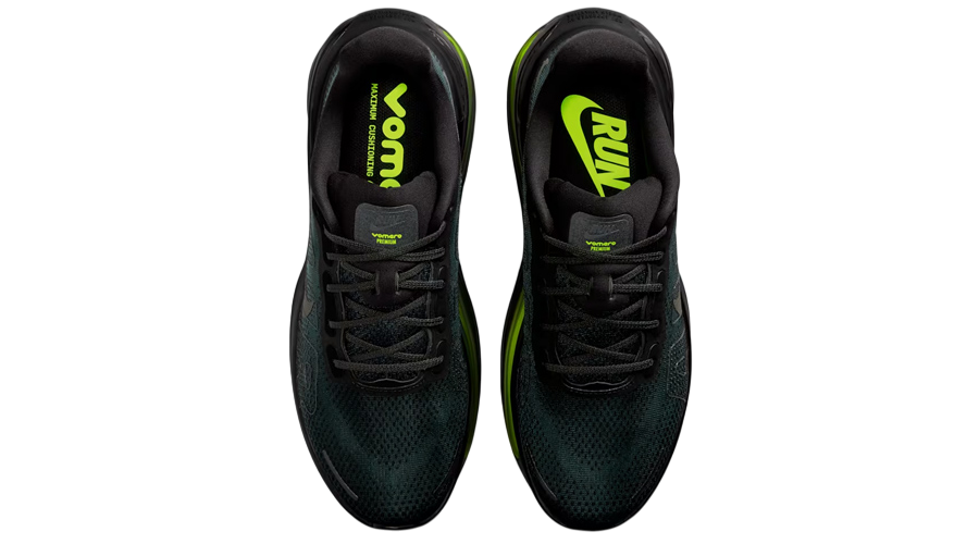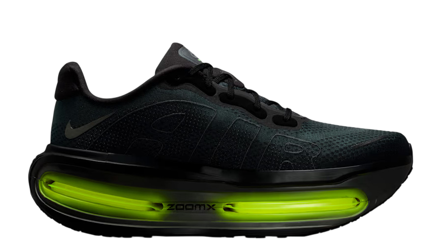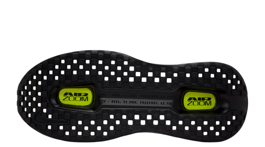 A blackout mesh base sets the tone, giving the shoe a stealth-like edge. Across the sides, oversized “RUN” graphics peek through, keeping the performance story front and centre. Then comes the hit of Volt — bright, electric, and unmistakably Nike. You’ll spot it glowing through the exposed Air Zoom units and small accents throughout the upper, adding that spark of contrast sneaker fans love.