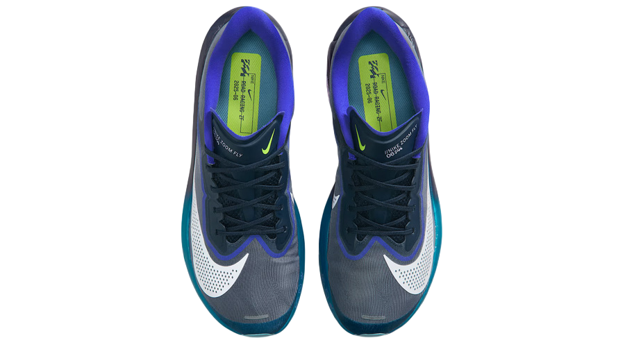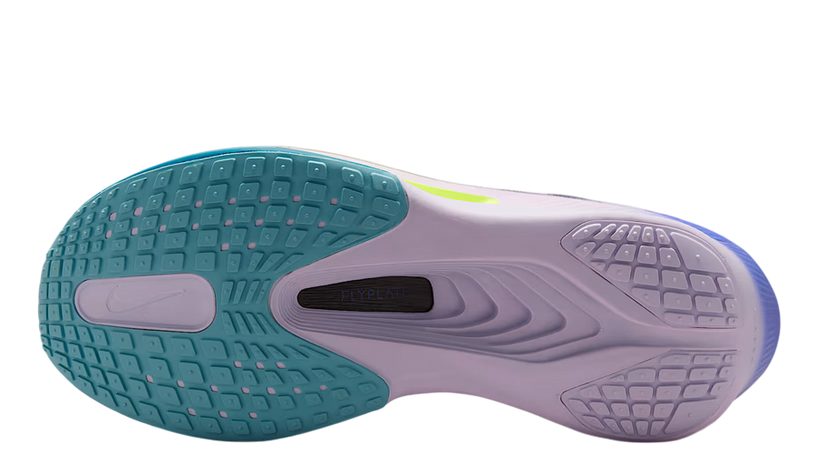 At the core of the design sits ZoomX foam, Nike’s lightest and most responsive midsole cushioning. It returns energy with every stride, keeping transitions smooth and consistent across long distances. Working alongside the foam is a full-length carbon-fibre Flyplate, adding propulsion and structure that helps maintain speed when fatigue sets in. Together, they create a shoe that feels snappy underfoot yet stable enough for sustained training or race-day conditions.