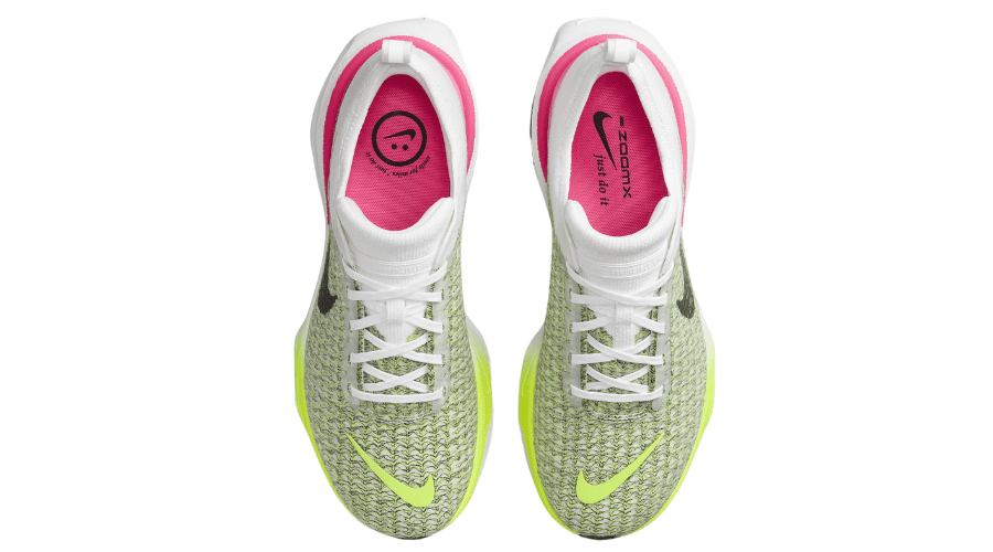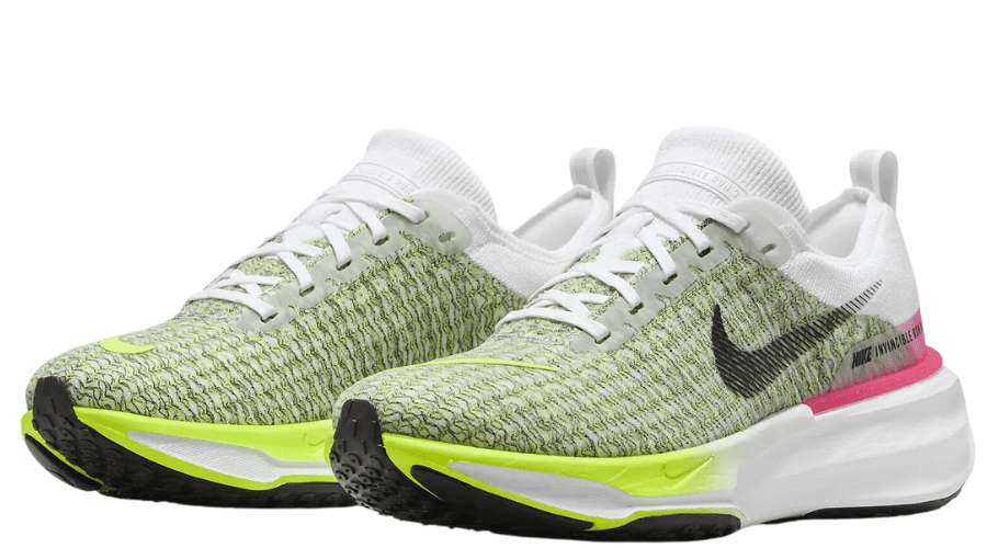 The Nike ZoomX Invincible Run 3 White Volt Hyper Pink is a popular running shoe from Nike’s lineup. It is designed for long-distance running and is known for its soft, comfortable cushioning provided by the ZoomX midsole. The shoe features a Flyknit upper that offers breathability and a wider midsole for improved stability during your runs.
