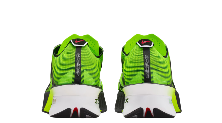 The Nike ZoomX Vaporfly Next% 4 “Ekiden Pack” arrives with a bright lime base and sharp black graphics that trace across the upper. The look draws from the classic Nike Air Katana, giving the shoe a bold, fast vibe even when it’s standing still. Japanese characters frame the tongue, heel, and insole, tying it back to the long-running Ekiden tradition that fans of the series know well. A soft green fade at the heel adds a smooth shift in colour without taking away from the striking contrast across the body.
