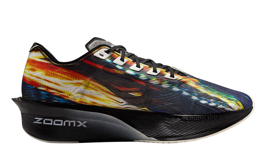 A multicolour print runs across the engineered mesh, giving the shoe the same visual blur you’d catch from long-exposure city lights. Nike contrasts the vibrant upper with a blackout ZoomX midsole, creating a sharp, aggressive look that’s ready to move. Every detail supports forward momentum, right down to the sculpted midsole geometry.