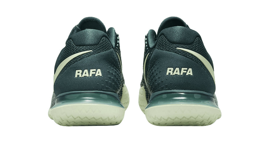 Introducing the NikeCourt Zoom Vapor Cage 4 Rafa “Deep Jungle” DD1579-301, a tennis shoe redefining durability. It’s designed for resilience, paying tribute to Rafael Nadal with his Bull logo and “Rafa” on the tongue and heel. What’s special? A data-driven design ensures strategic material placement for durability, even wrapping the outsole over the midsole. The unique lacing system offers foot support during quick moves. Plus, the Zoom Air unit adds a springy feel to your step on the court.