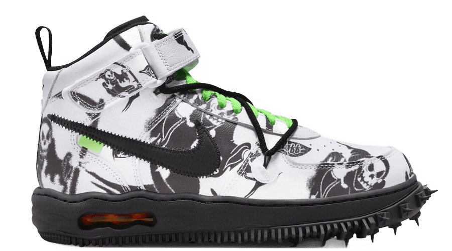 In the world of sneaker collaborations, few names resonate as profoundly as Off-White and Nike. Virgil Abloh, the visionary founder of Off-White, left an enduring legacy that continues to shape the world of trainers. Today, we delve into the latest release from this iconic partnership – the Off-White x Nike Air Force 1 Mid SP Leather “Grim Reaper” DR0500-102.
