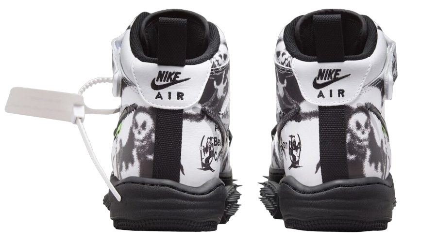 This iteration of the ever-popular Nike Air Force 1 Mid boasts a predominantly white canvas, serving as the perfect backdrop for a distinctive graphic motif inspired by the Grim Reaper. The eerie design sprawls across the entire upper, extending seamlessly to the medial ankle. Here, the iconic Off-White logo makes its presence felt, paying homage to Abloh’s enduring influence.